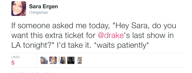 Let me explain how the night went down. It all began with a call I received from my friend Justine (how we became friends is also worthy of a blog post). Now Justine and I have hung out once before this. Months ago. We text here and there, have tried to coordinate another get together, but with busy schedules, it’s hard. So you know I was a little shocked when I received a call from her around 7:20pm on Thursday, about an hour before the show was to start. Answering the call with a bit of question in my voice, she asked what I was doing and said she may have an extra ticket to Drake’s show and was looking for someone who lived close to the venue and who would appreciate the concert. Immediate excitement set in. She said she’d call me back with a yes or no once she got to the venue.