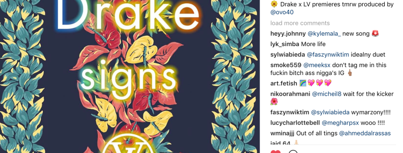 “Signs,” inspired by Louis Vuitton’s upcoming collection and produced by 40, is the first piece of music Drake’s released since More Life. I also just realized I haven’t published my review of that album… slacking.